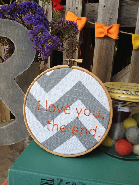 Hand Stitched with love on quality gray and white chevron fabric. Display ready in a 5" Colonial Needle Hoop.
