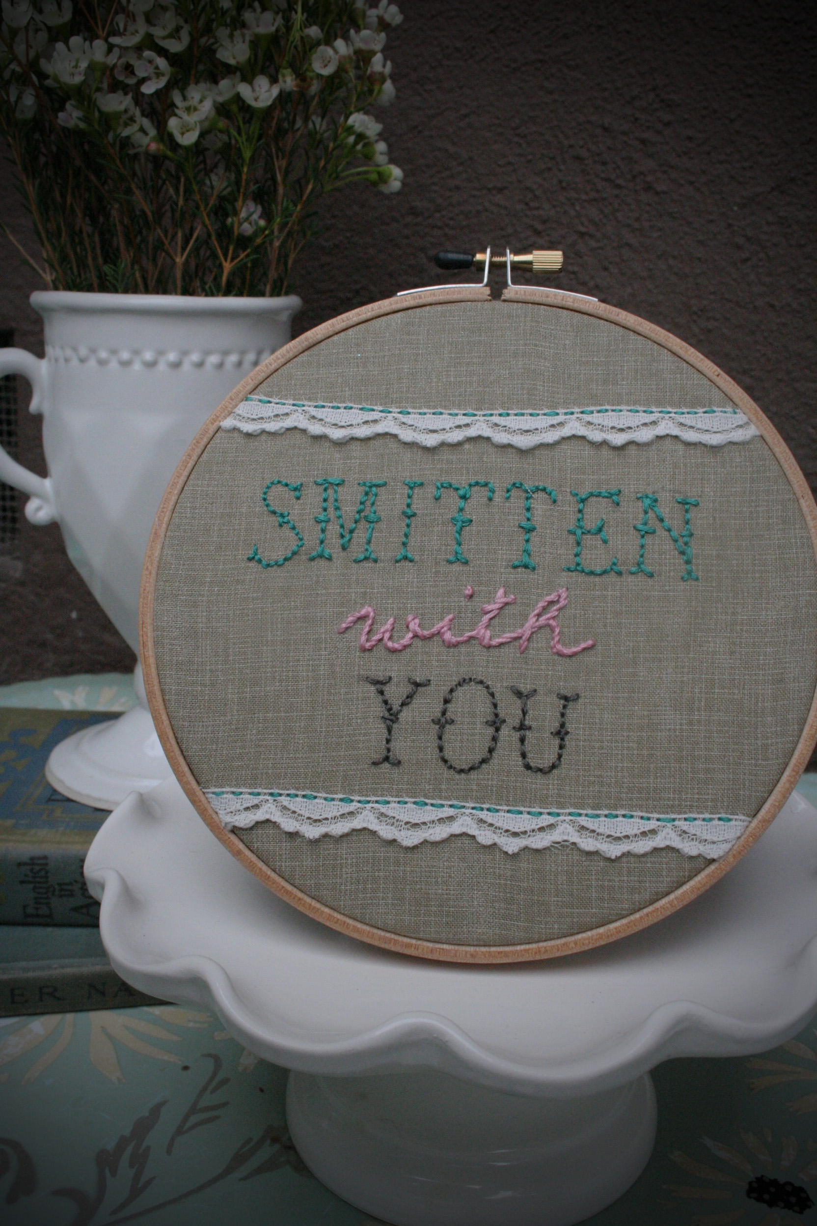 Hand-stitched with love on high quality linen and accented with vintage lace.