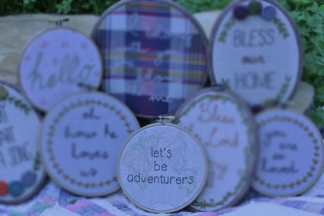 Hand Stitched with love on Map Printed Muslin and display ready in a 5" Colonial Needle round Edge Hoop